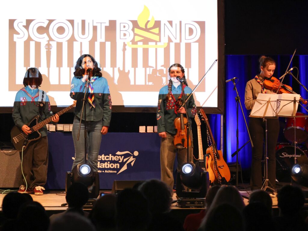 On Tuesday 25 November Waldegrave pupils Jessica S, Dakshina AP and Hannah A stepped on to the stage at the Greater London South West Jack Petchey Awards as part of the 2nd Teddington Scout Band. They were invited to play at the event in The King’s Centre, Chessington, after the success of their performance at the same event last year.