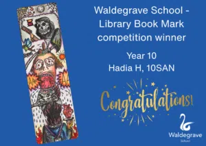 Well done to Hadia H, 10SAN, for her winning entry into Mrs Croucher’s Library competition for the best book mark designs. Hadia’s spooky design is really striking. She will receive a £10 voucher.